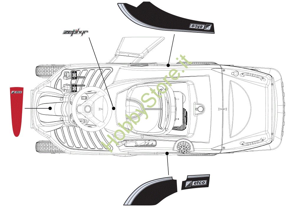 Ricambio Kit etichette Etichette (2/2) ZEPHYR 72/13 H (4in1) e EURO 5 Trattorino della marca Efco Richiede pezzi:1