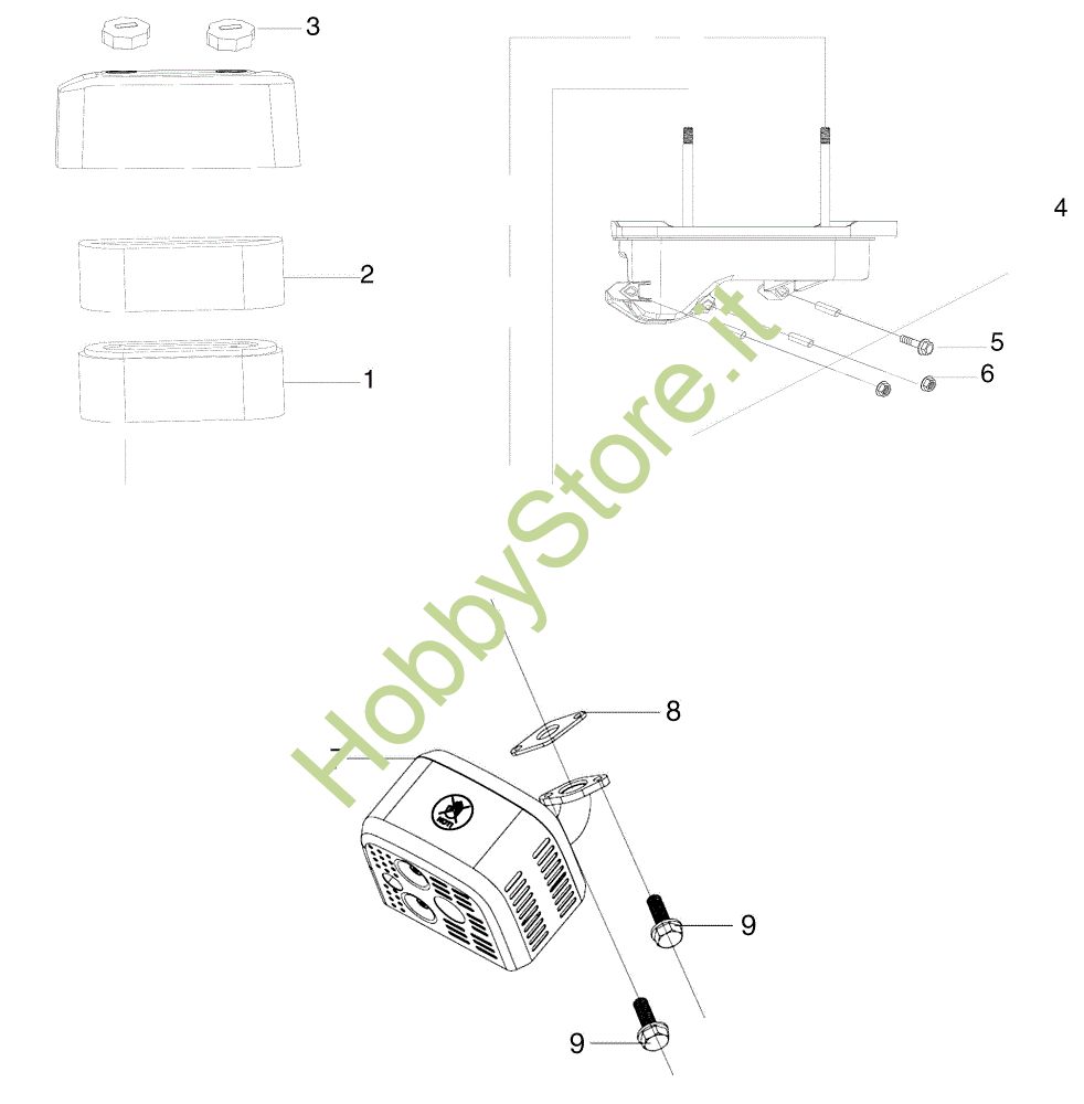 Ricambio Kit marmitta Filtro aria MISTRAL 72/12,5 K H (3in1) Trattorino della marca Oleo-Mac Richiede pezzi:1