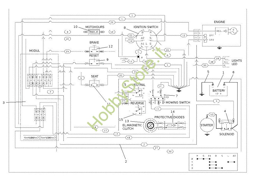 Trattorini OM 107 L/16 KH (K1600AVD) Cat. 2018 Trattorino Impianto elettrico della marca Oleo-Mac