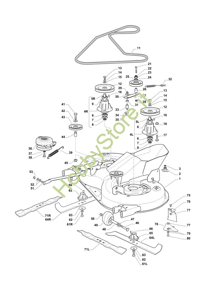 Ricambio Albero DX; RIGHT Piatto di taglio EF 84/14,5 K H Cat. 2019 Trattorino della marca Efco Richiede pezzi:1