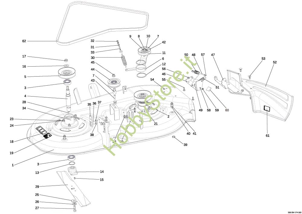 Ricambio fissa Piatto di taglio (1/2) EF 107 L/24 KH (K2400AVD V-Twin) Cat. 2018 Trattorino della marca Efco