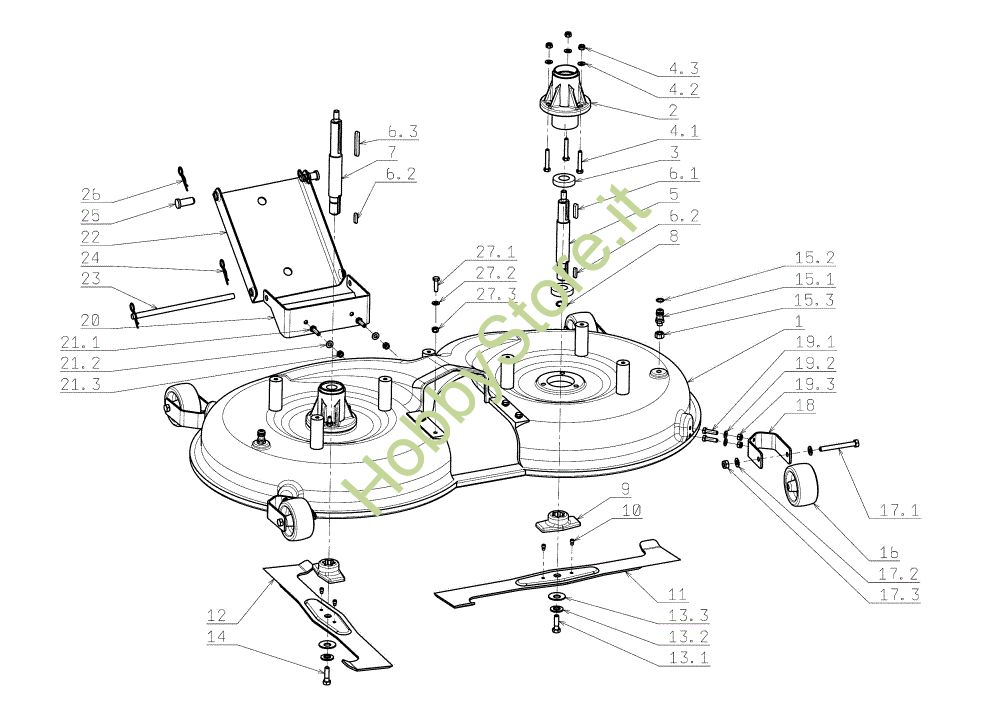 Ricambio Albero SX; LEFT Piatto di taglio (1/2) EF 124J/22H Cat.2006-2007 Trattorino della marca Efco Richiede pezzi:1