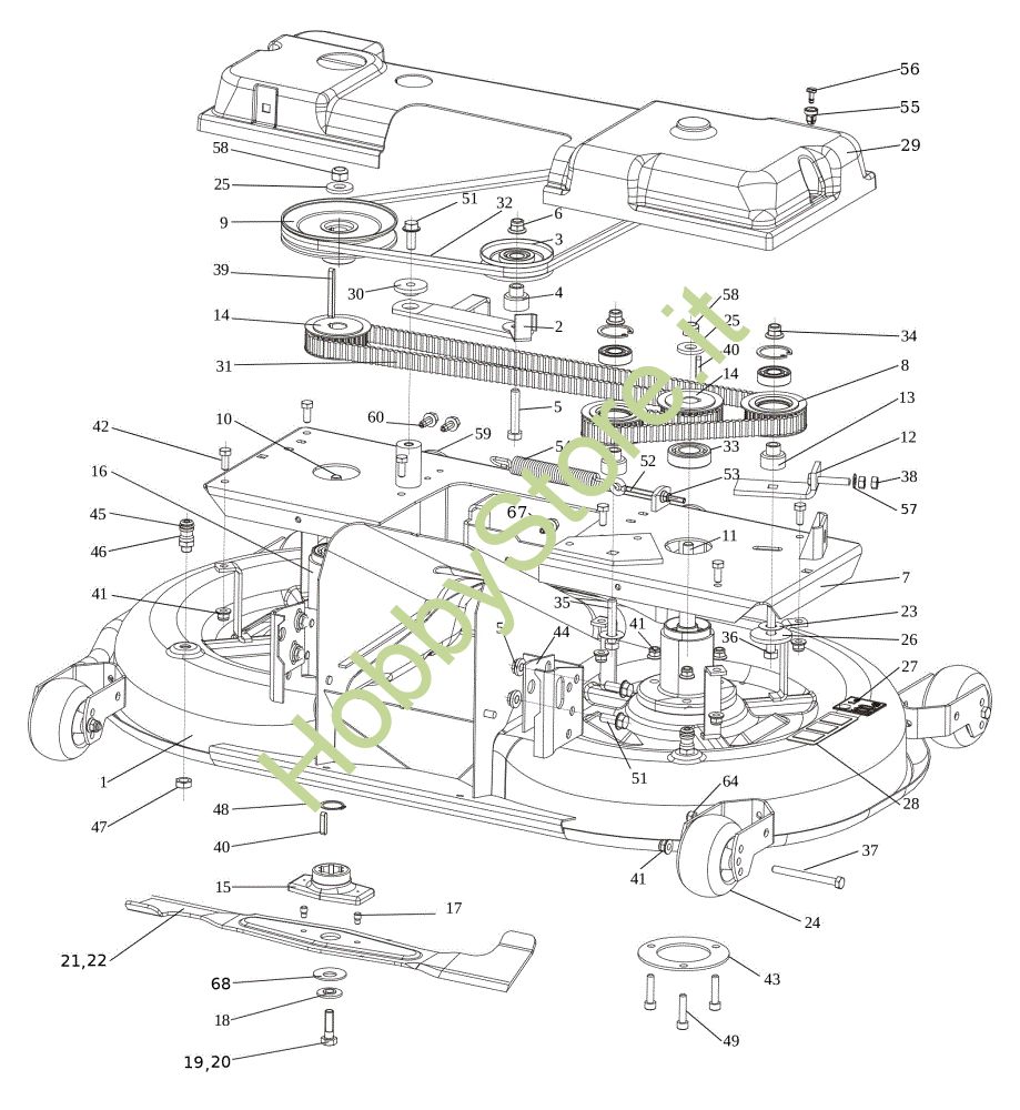 Ricambio Albero Piatto di taglio (1/2) OM 106/22 H Cat. 2023 Trattorino della marca Oleo-Mac Richiede pezzi:1