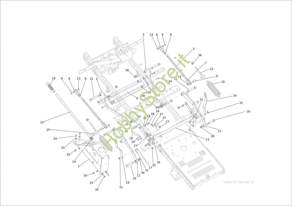 Ricambio Braccio completo Regolazione piatto di taglio CHEYENNE 26 (KAWASAKI) Cat. 2023 Trattorino della marca Oleo-Mac Richiede pezzi:1