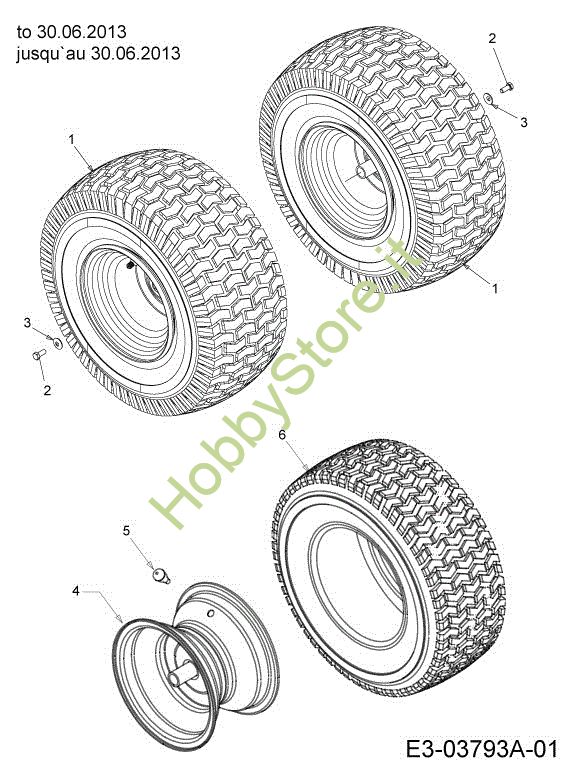 Ricambio Ruota Grigio; Grey Ruote posteriori STORM 97/13 T Cat.2013 Trattorino della marca Efco Richiede pezzi:2