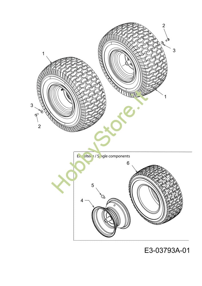 Ricambio Ruota Grigio; Grey Ruote posteriori TORNADO 108/15,5 T Cat.2011 Trattorino della marca Oleo-Mac Richiede pezzi:2
