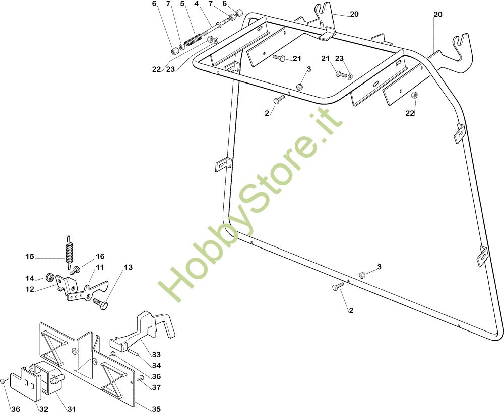 Ricambio Staffa Sacco (Parte fissa) EF 92C/13,5H Cat.2005 Trattorino della marca Efco Richiede pezzi:1