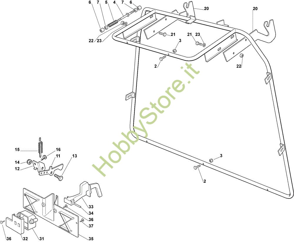 Ricambio Staffa Sacco (Parte fissa) OM 92C/13,5H Cat.2007 Trattorino della marca Oleo-Mac Richiede pezzi:1