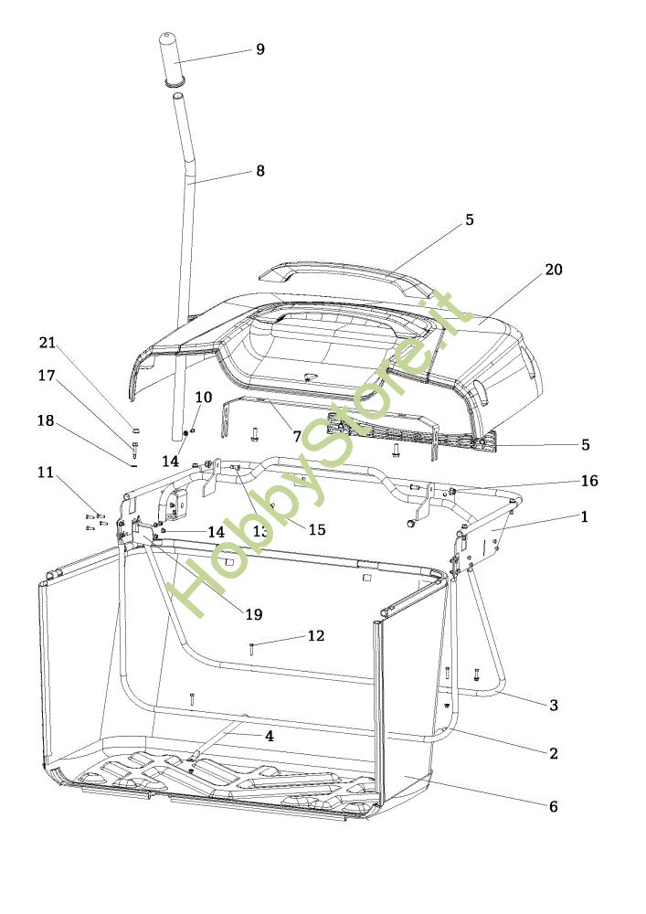 Ricambio Telaio superiore Sacco raccoglierba OM 106/20 KH Cat. 2022 (Victus) Trattorino della marca Oleo-Mac Richiede pezzi:1