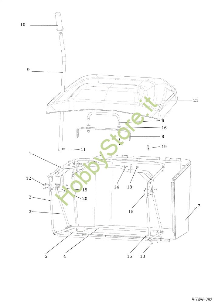 Ricambio Telaio Sacco raccoglierba OM 92/16H Cat. 2021 Trattorino della marca Oleo-Mac Richiede pezzi:1