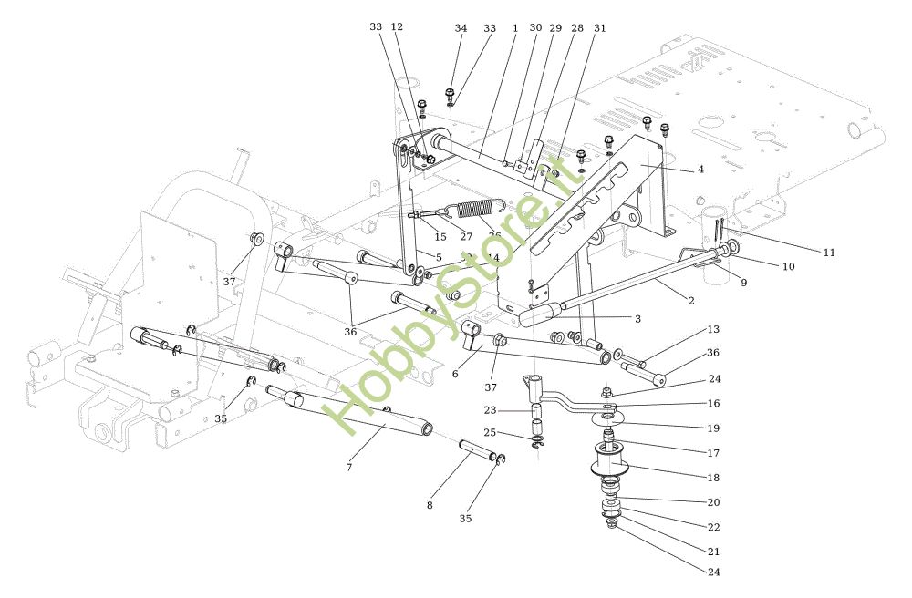 Ricambio Albero Sollevamento piatto di taglio TUAREG 92 EVO 4x4 (K2400AVD V-Twin - EURO5) Cat.2023 Trattorino della marca Efco Richiede pezzi:1