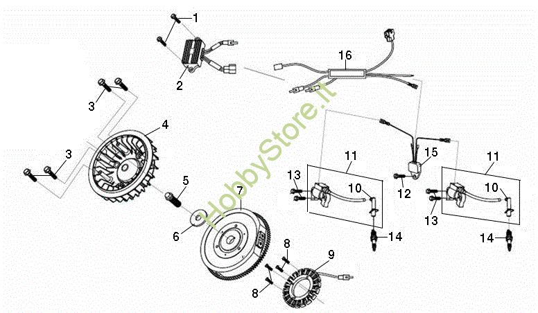 Ricambio Bobina Volano e bobina EF 107 L/24 KH (K2400AVD V-Twin) Cat. 2017 Trattorino della marca Efco Richiede pezzi:1