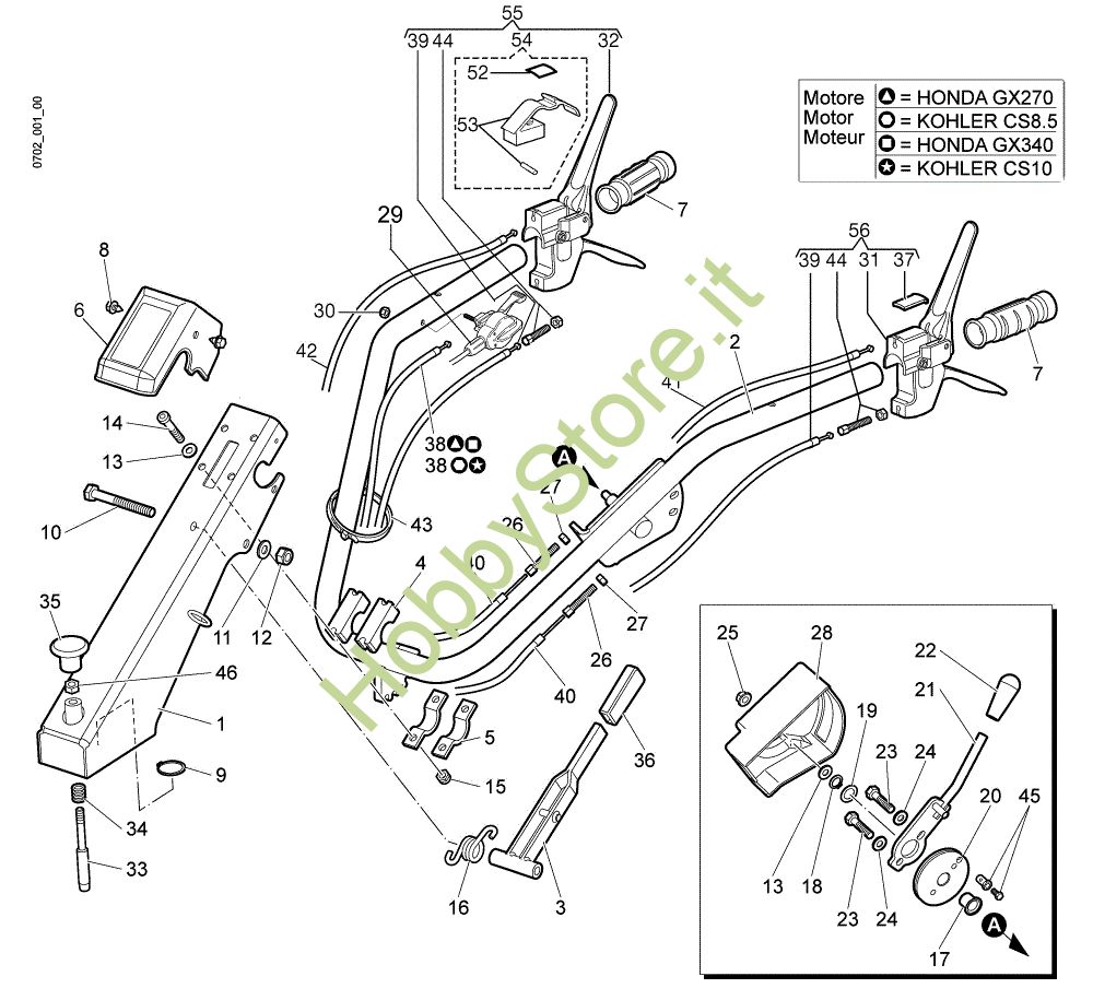 Ricambio Trasmissione Honda GX270; Honda Manubrio e comandi NTS 65 (Fino/Until 2009) Trinciasarmenti della marca Nibbi Richiede pezzi:1