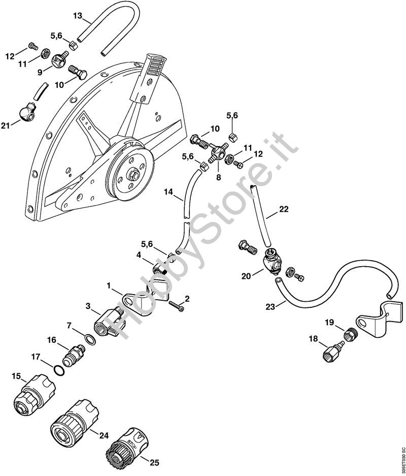 Ricambio Gruppo di applicazione attacco per acqua Troncatrici (TS) TS 350 AVE STIHL Contiene anche i ricambi nr. da 1 a 5, 7 a 17