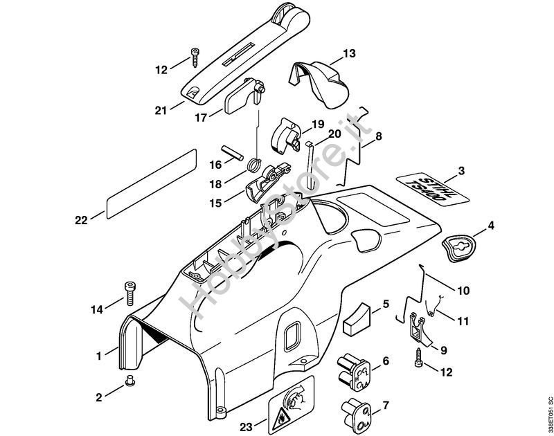 Ricambio Cappottatura Troncatrici (TS) TS 400 STIHL Contiene anche i ricambi nr. da 1 a 5, 9 a 13, 15 a 22