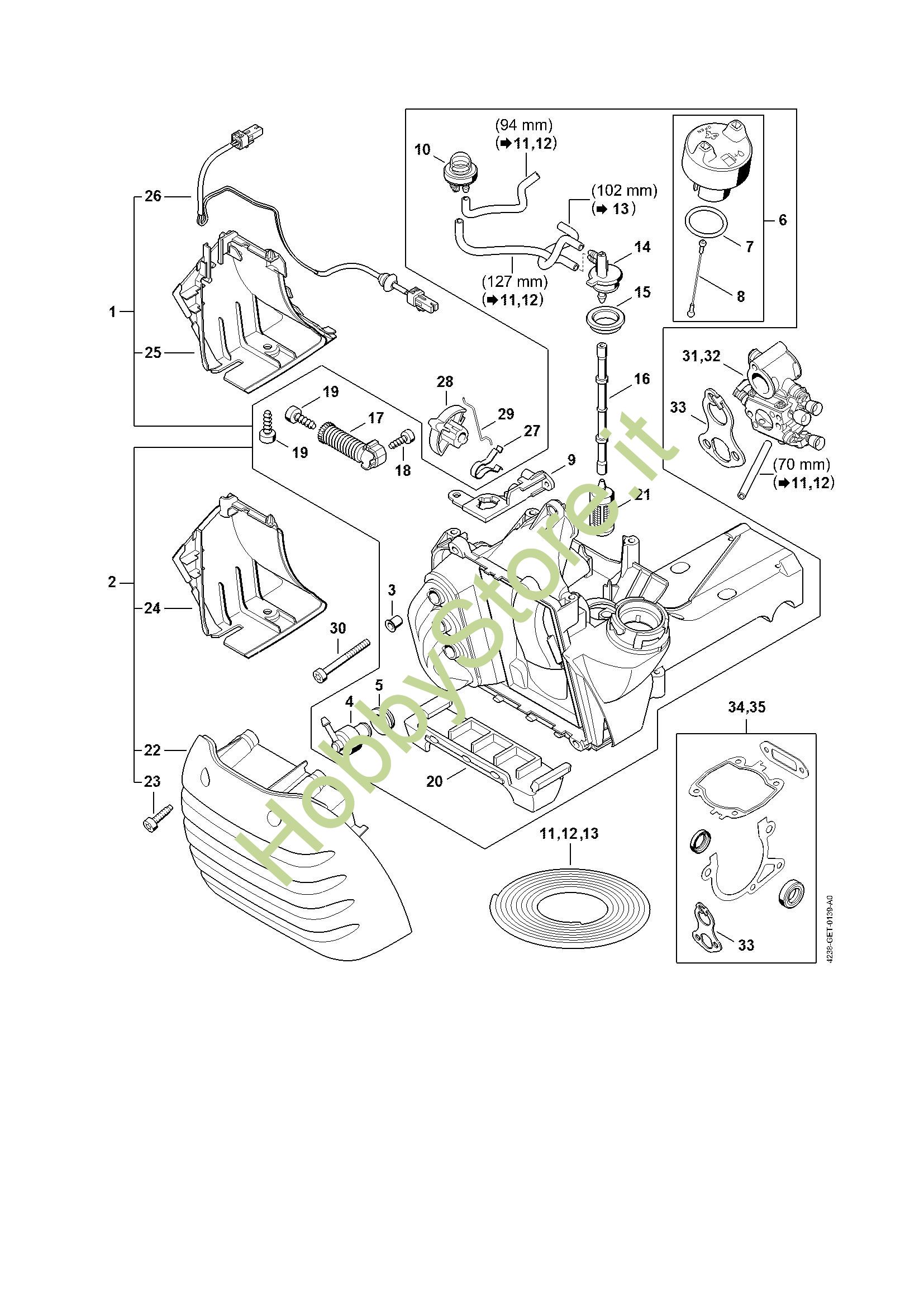 Ricambio Corpo serbatoio Troncatrici (TS) TS 410-A STIHL Contiene anche i ricambi da n. 3 a 24
