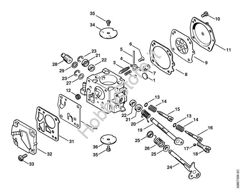 Ricambio Carburatore HS-277A Troncatrici (TS) TS 510 STIHL Contiene anche i ricambi da n. 1 a 36