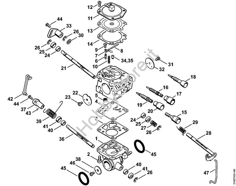 Ricambio Carburatore WJ-114C Troncatrici (TS) TS 700-Z STIHL Contiene anche i ricambi nr. da 1 a 17, 19 a 34, 36 a 46