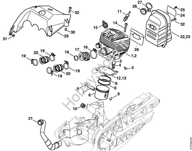 Ricambio Silenziatore Troncatrici (TS) TS 800-Z STIHL Contiene anche i ricambi n. 28 e 32