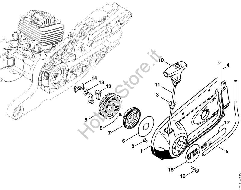 Ricambio Coperchio avviamento con dispositivo di avviamento Troncatrici (TS) TS 800-Z STIHL Contiene anche i ricambi nr. da 1 a 4, 6 a 15