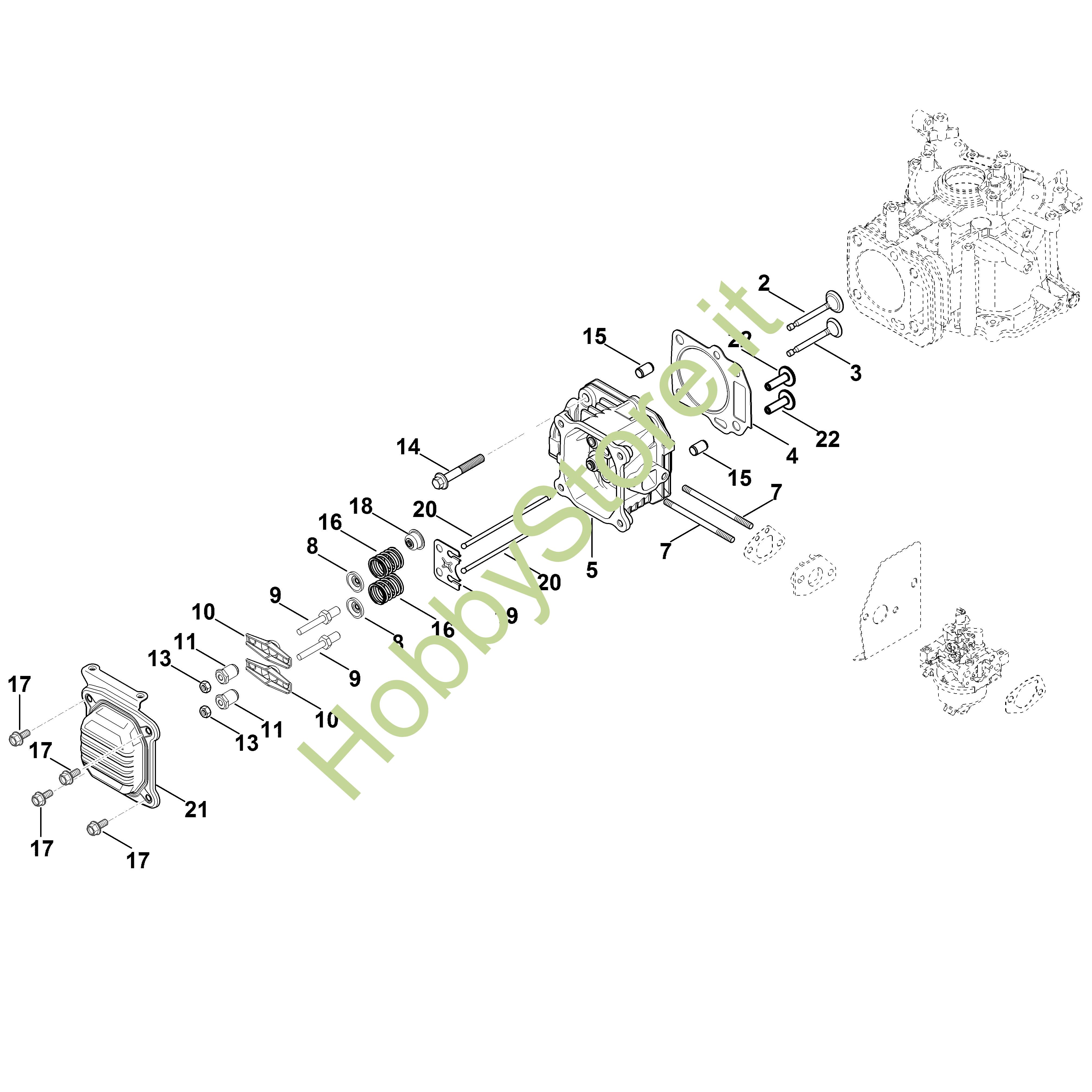 Ricambio originale Set parti valvola Kohler XT-6 XT-675 (XT675-3052) Stihl Contiene anche i ricambi nr. 2,3,8 a 12,15,16,18 a 20