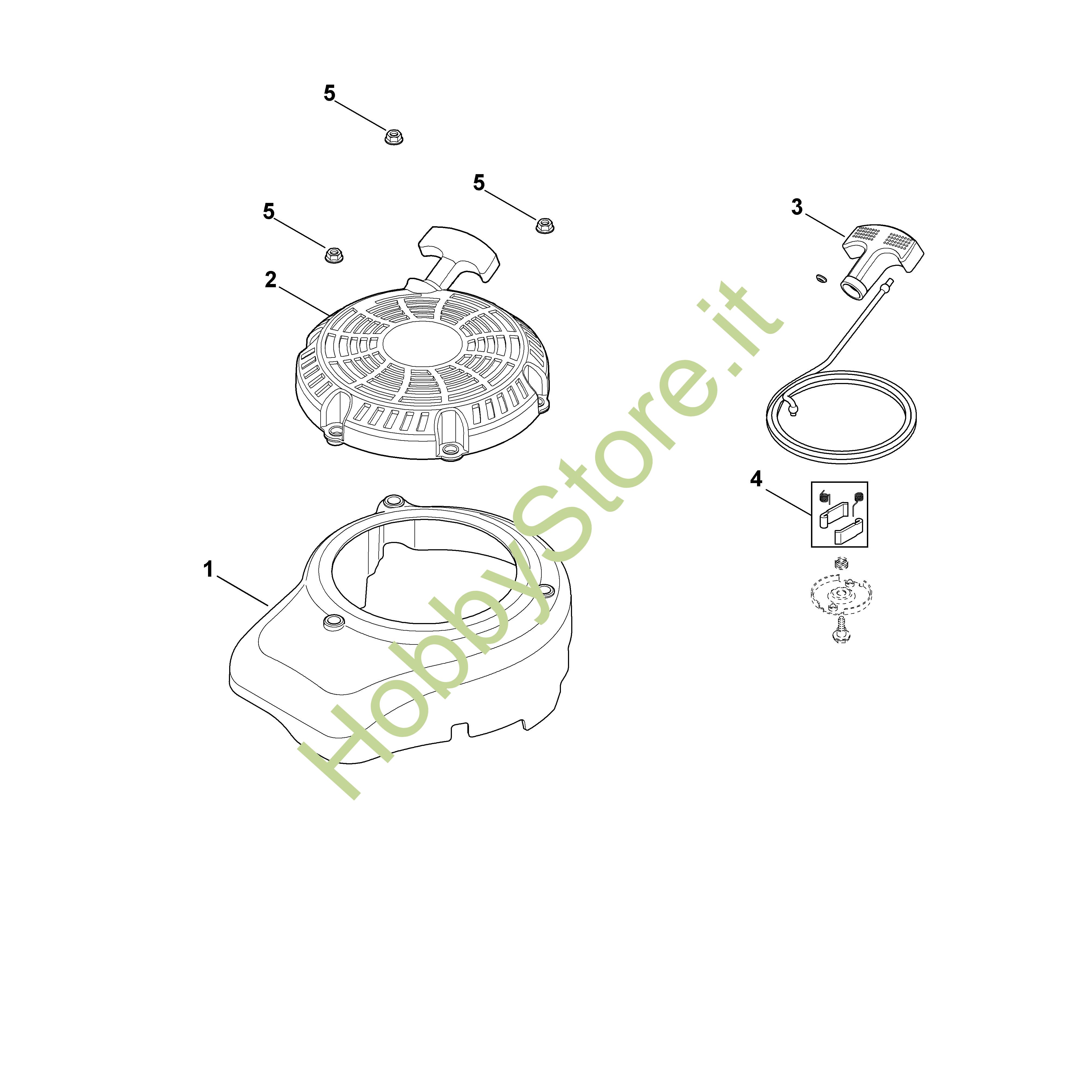 Ricambio originale Dispositivo di avviamento compl. Kohler XT-6 XT-6 (XT149-0213) (2011) Stihl Contiene anche i ricambi nr. 3 e 4